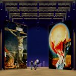Das Himmelstor ist eine variable Raumtrennung. Die zwei großen schwenkbaren Flügel bestehen aus je 24 Bildschirmen. Sie bilden entweder eine große Projektionsfläche oder geöffnet zwei Präsentationsbereiche für Filme, Videos, Animationen oder Einzelbilder. Geschlossen teilen sie den Raum in einen sakralen und einen profanen Bereich.